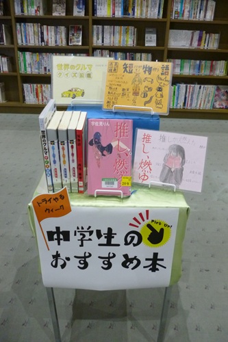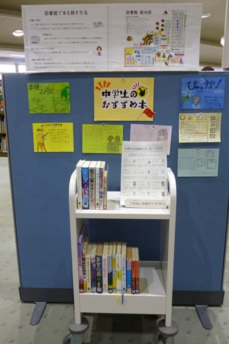 「中学生が作ったPOPとおすすめ本コーナー」をカウンター前に設置しました。